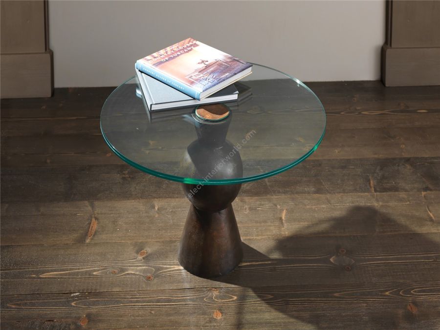 Coffèè table with cast bronze base and glass top Designed by: Ciarmoli Queda Studio