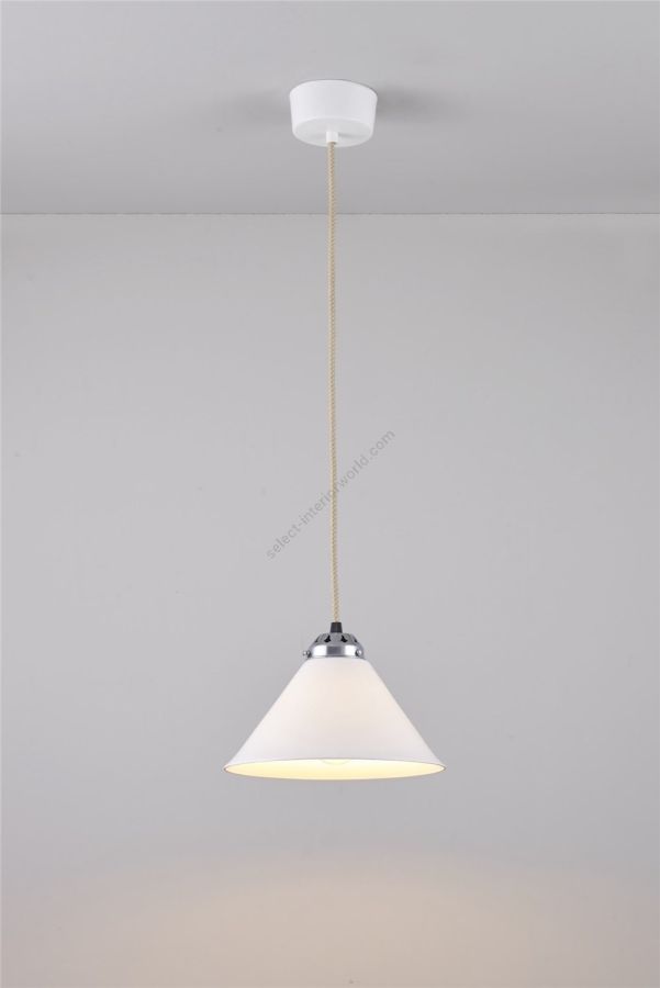 Traditionally inspired with a contemporary twist, the Cobb Pendant draws inspiration from a Dutch cobblers light. Modernised with a bone china shade and our smart braided cotton cable, this pendant is an ideal choice for lighting dining tables and kitchens, available with polished chrome, satin brass or antique brass metal work.