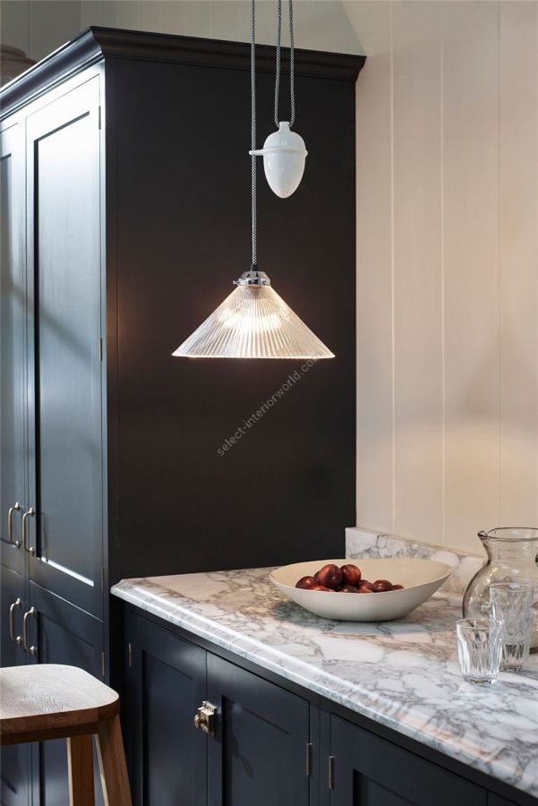 Traditionally inspired with a modern twist, the Conical Prismatic Pendant is an ideal choice for lighting dining tables and kitchens. The glass shade allows for an even dispersion of light, and is finished beautifully with our signature cotton braided cable.
