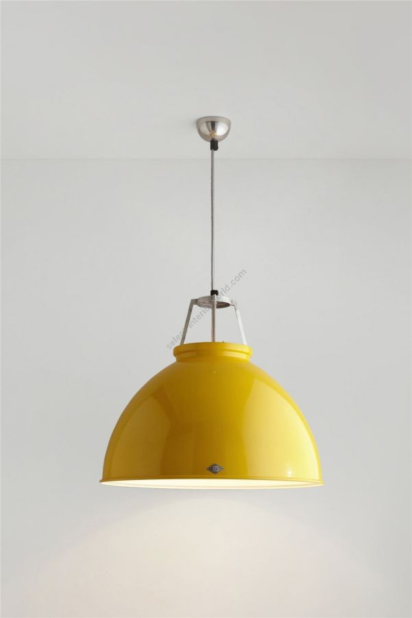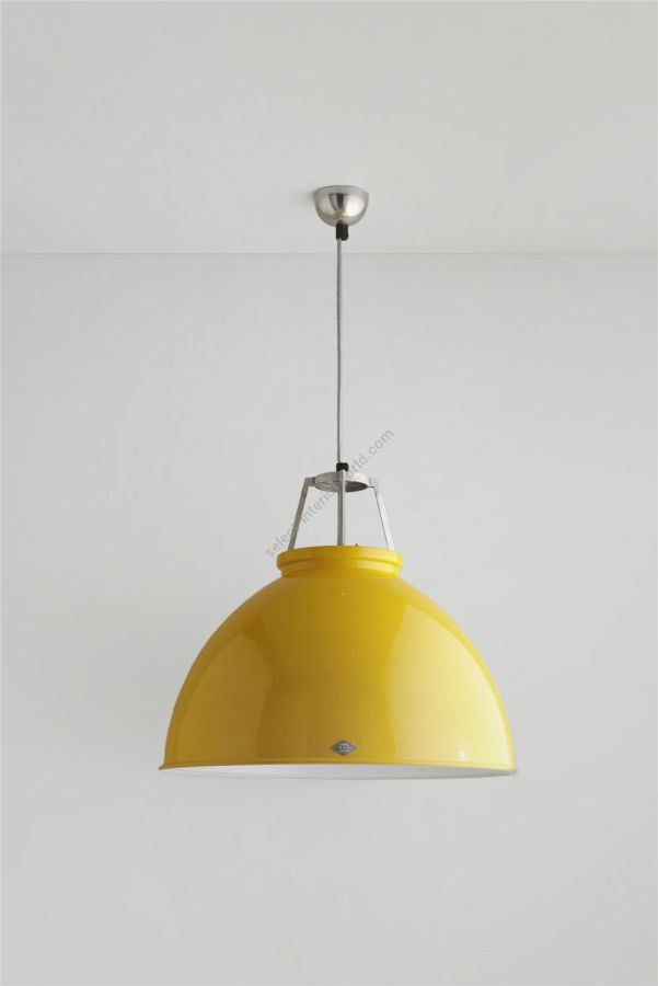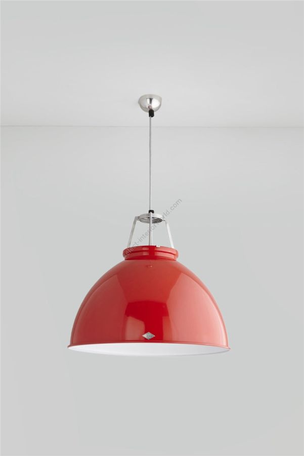 An original 1940s design, frequently seen in factories and industrial units of the period. Available in three different sizes and an array of colours, including polished aluminium, black, yellow, olive green, putty grey, red and white. Supplied with an armour steel braided cable and a choice of contrasting coloured interiors. There is an optional etched glass visor to help reduce glare and create a softer, more diffused light.