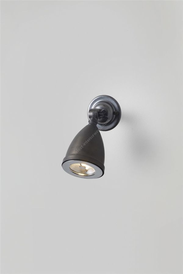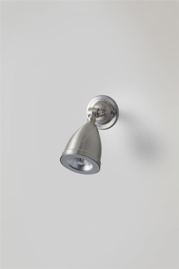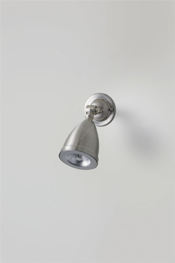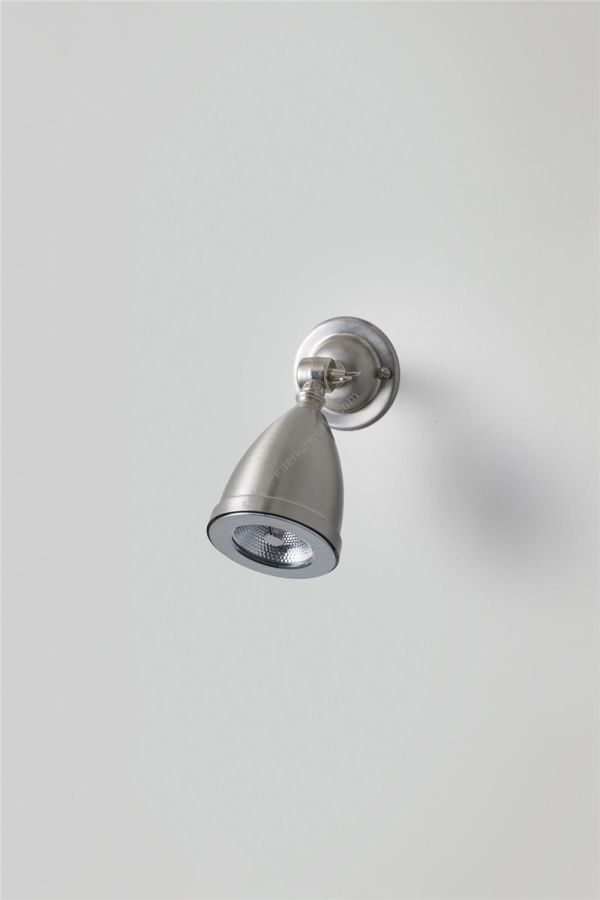 A shaded low voltage Spotlight, with a swivel base and adjustable knuckle joint. Available in nickel plated or weathered brass. The anti glare bar over the lamp makes this a discreet source of spot lighting. A beam angle of 8° spot, 20W. This product requires an additional low voltage halogen transformer to connect to a standard mains voltage circuit, see 'Accessories' for further details.