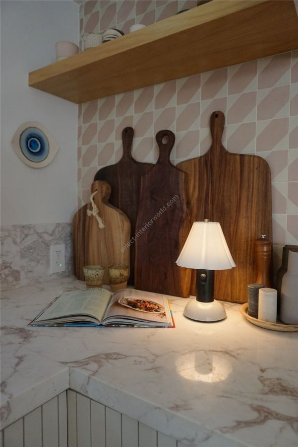 Blossom is our first portable, cordless light, uniting traditional craftsmanship with the latest LED technology. The purposely petite design is inspired by the Plum blossom, with its fluted bone china shade echoing the outlines of the delicate petals, topped by a satin brass detail. Developed with functionality and flexibility in mind, Blossom easily travels from the dining table to the living room, hallway and garden or enhances the atmosphere in a restaurant or hotel lobby.
