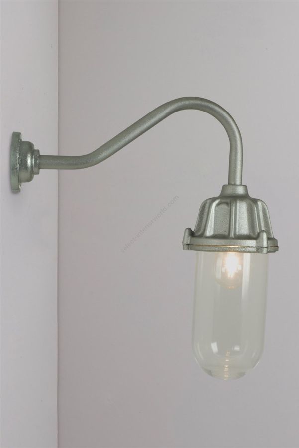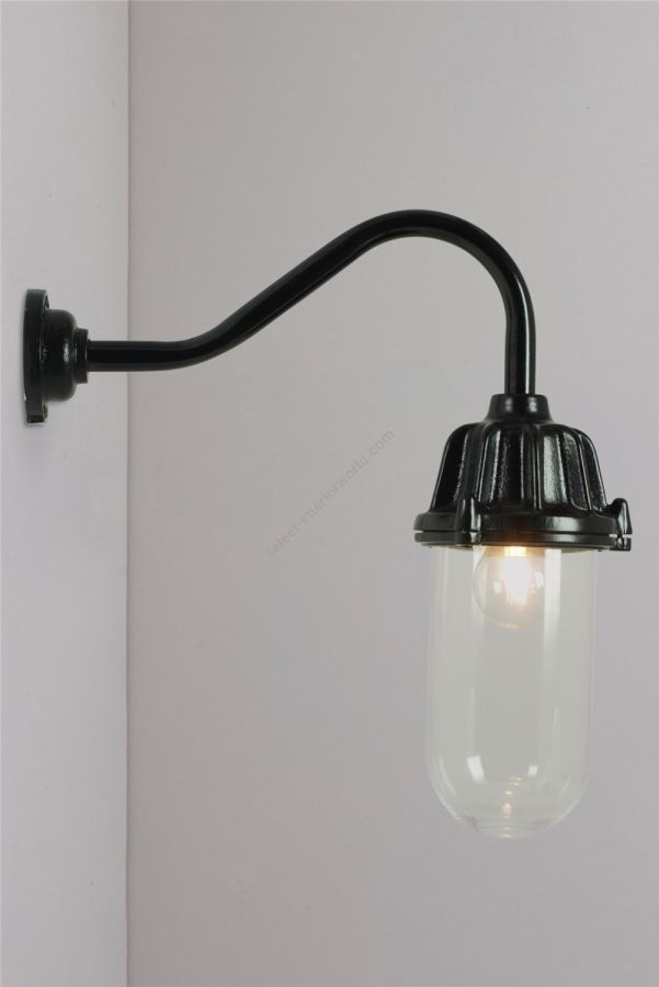 The Dockside Wall Light is a traditional style of exterior light, popular in both rural and urban locations. Cast in aluminium alloy with an anodised finish or polyester powder coated, the lights longevity is assured. Available in black or grey and the choice of clear or frosted glass. The light is sold mounted either on a swan neck bracket with round base dome cover or on a corner fork.