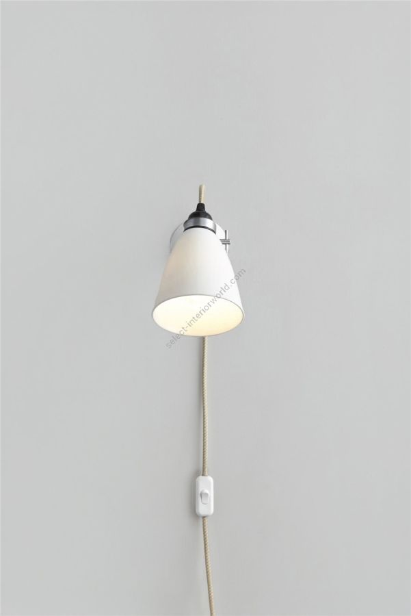 A British design classic in translucent bone china. The Hector Dome Wall Light features a smart cotton braided flex and moveable shade, which offers a source of ambient light. This truly is a practical, space-saving light fixture.