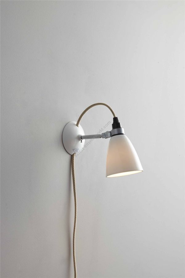 A British design classic in translucent bone china. The Hector Dome Wall Light features a smart cotton braided flex and moveable shade, which offers a source of ambient light. This truly is a practical, space-saving light fixture.