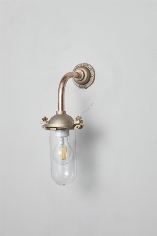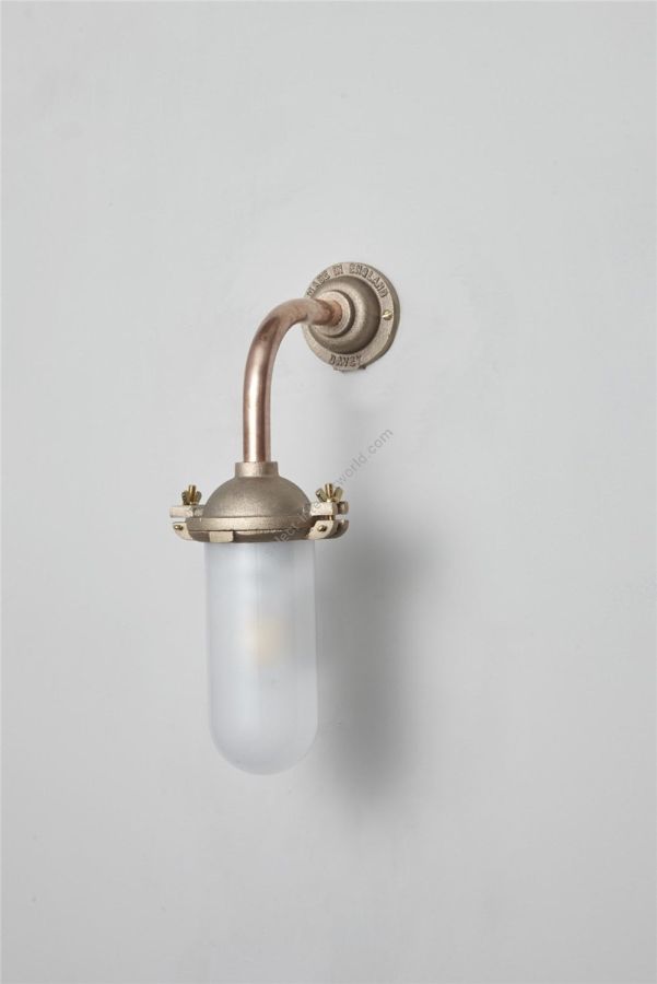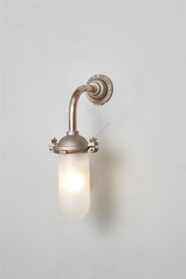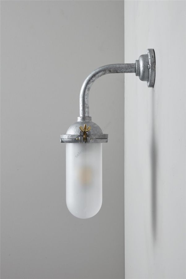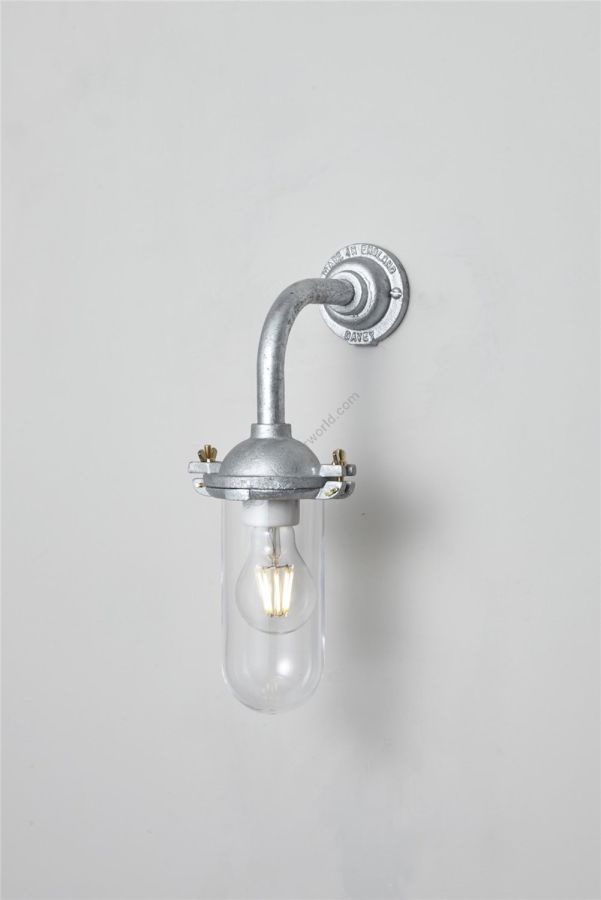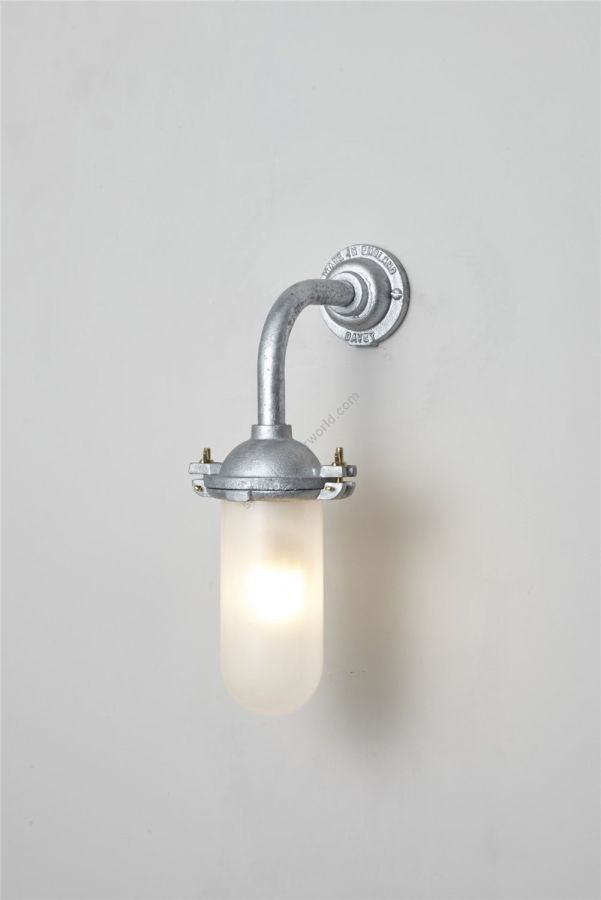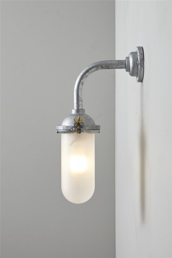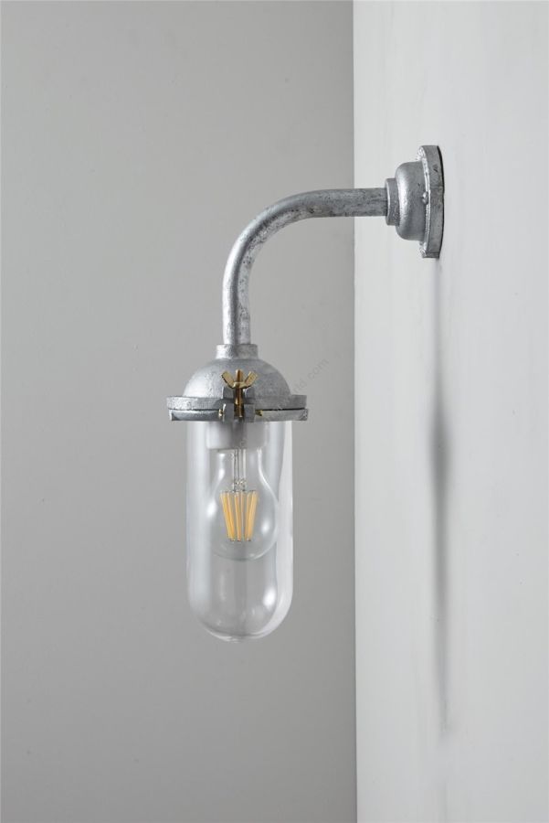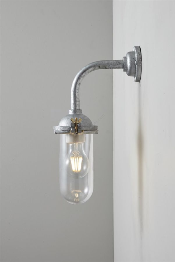 An Exterior Bracket Light with a simple ring that holds the clear or frosted glass fitting. This beautifully simple wall light is available in either galvanised cast iron or sandblasted bronze, and with a canted or right angle arm.