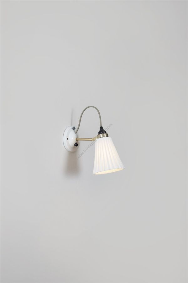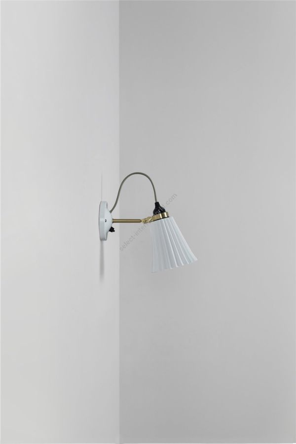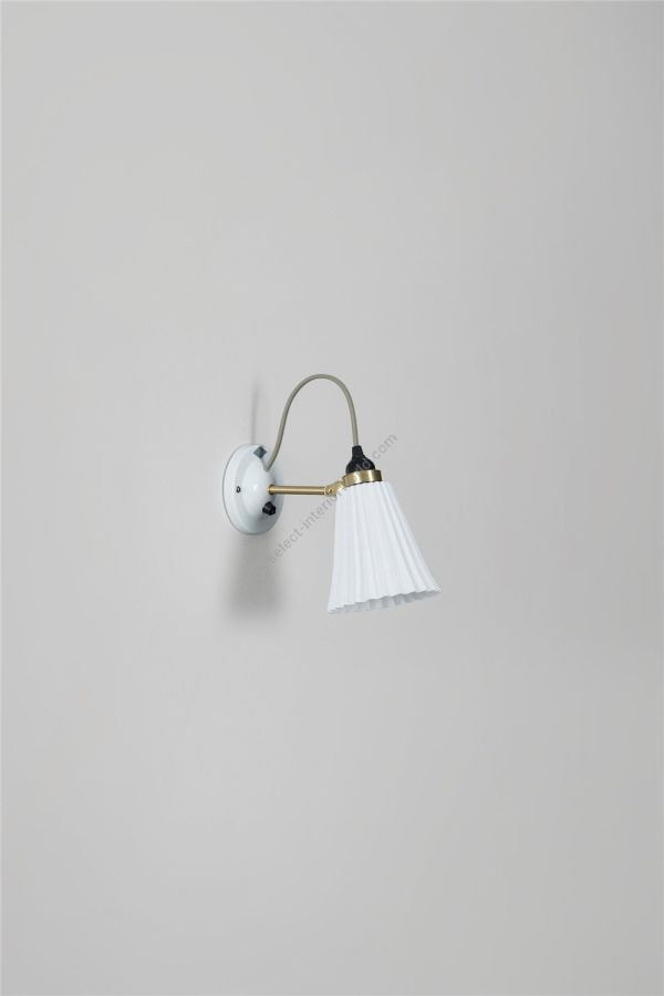 The handmade Hector Pleat Medium Wall Light beautifully marries fine bone china with satin brass accents. Its iconic pleated shade exudes elegance, while the glossy bone china finish is gracefully complemented by the satin brass detailing. With its adjustable clamp, you can direct the light precisely where it's desired. The design is enhanced by our signature cotton braided cable in a calm grey hue.