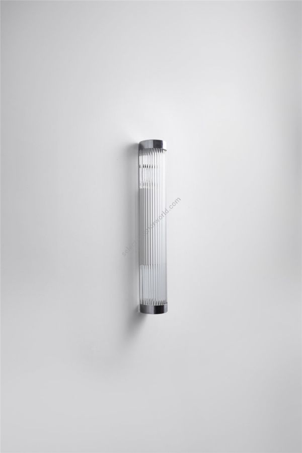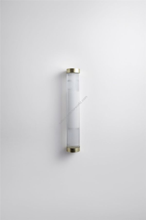 This is the LED version of the 7211 Narrow Pillar Wall Light, with an integral dimmable driver. The light's curved Art Deco-inspired profile is made of 8mm diameter solid glass rods. Available in weathered brass, polished brass or chrome plated finishes and in two different sizes (H:40cm x W:10cm or H:60cm x W:10cm).
