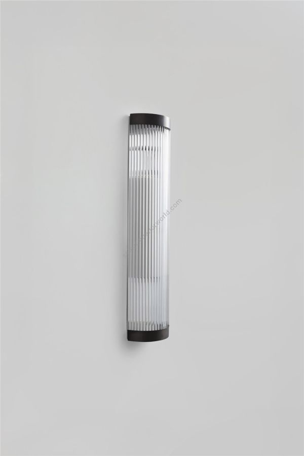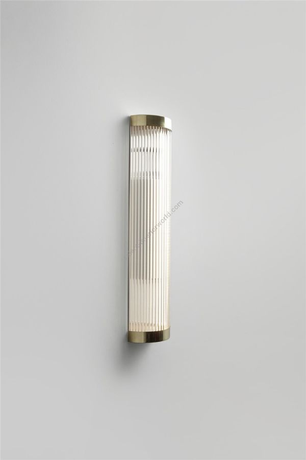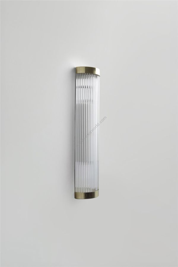 Our LED Pillar Wall Light is an elegant Art Deco inspired fixture. Perfect for illuminating bathrooms, its curved profile is made of 8mm diameter solid glass rods. Available in weathered brass, polished brass or chrome plated finishes, and two different sizes (H:40cm x W:15cm or H:60cm x W:15cm).