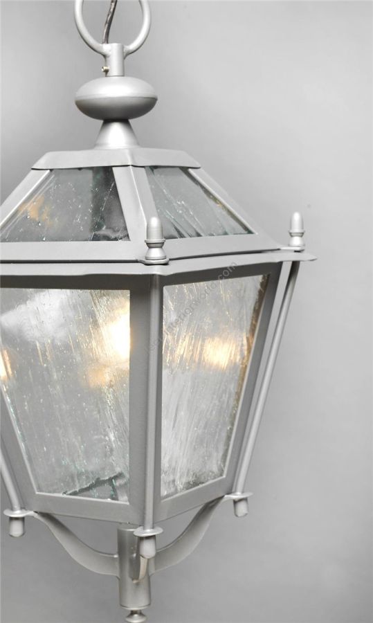 Iron lantern with chain and transparent glasses, galvanized and powder-coated. Lights: 1L. x 60W E27