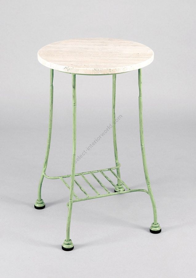 AISI 304 stainless steel round table with Travertino marble top, powder-coated.