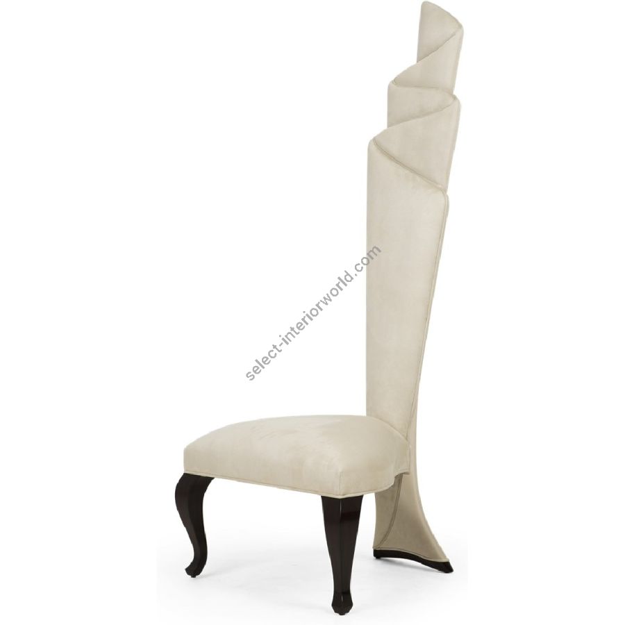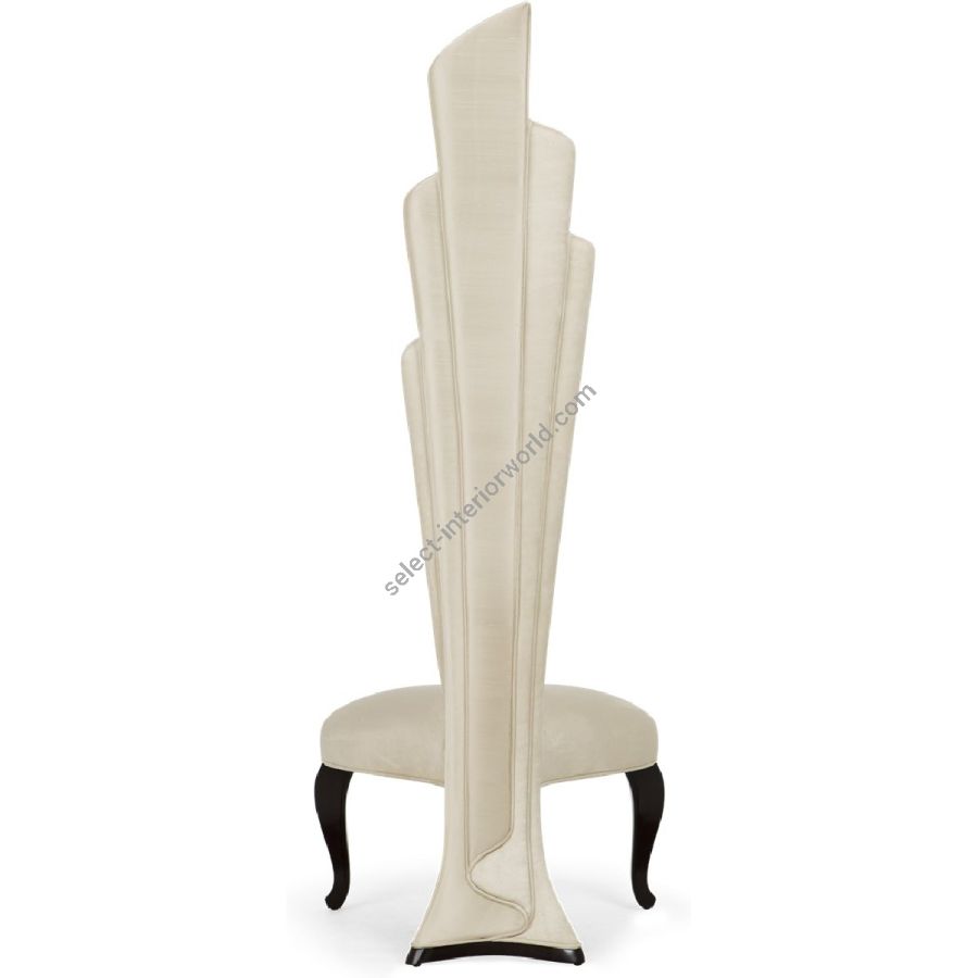 This masterly upholstered torch-back chair is a statement of form reminiscent of a finely crafted latin fan.