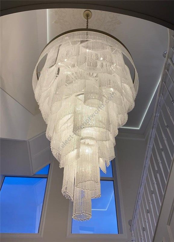 Elegant chandelier for your living room and living area, made of fringes composed of murano glass beads and hand-sewn crystal rods.