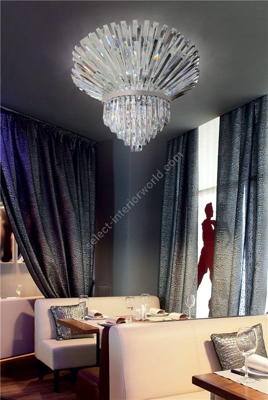 Elegant ceiling light with a refined design with pendants in murano glass or optical crystal, available with a gold or polished chrome finish