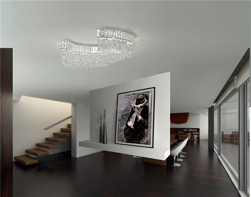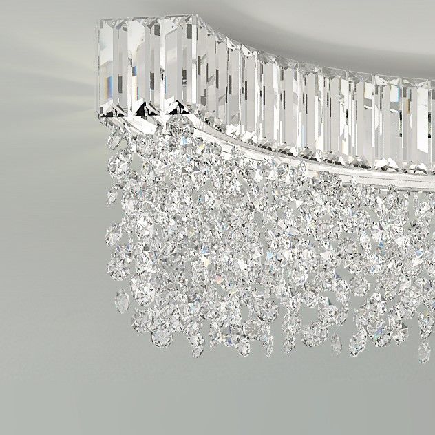 Scenic semicircular ceiling light with clear or coloured crystal pendants. Available in different sizes and finishes.