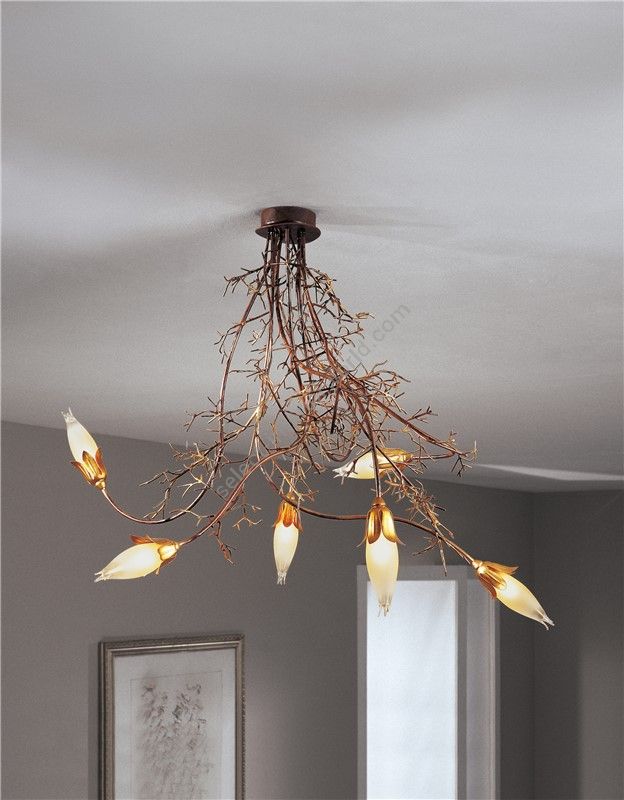 Ceiling lamp with an organic and floral design inspired by nature, that perfectly adapts to the following home environments: kitchen, living room, lounge and bedroom available in 2 colour combinations with reference to the frame and in 6 colour combinations with reference to the glass