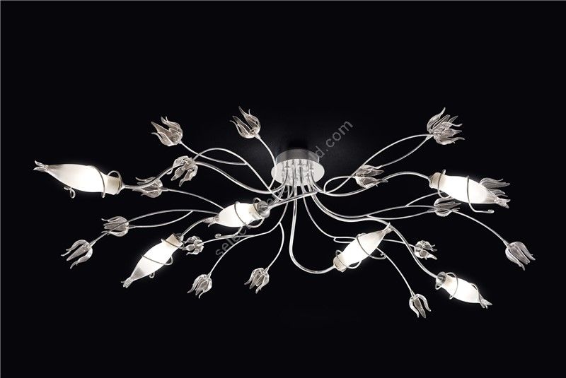 Ceiling lamp with a contemporary and floral design, that perfectly adapts to the following home environments: bathroom, kitchen, living room, lounge and bedroom available in 2 colour combinations with reference to the frame and in 2 colour combinations with reference to the glass