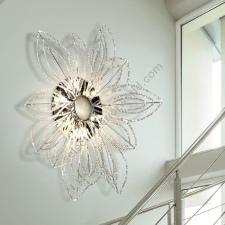 Wall light with decorative petals in the purest crystal and metal structure in two different finishes.
