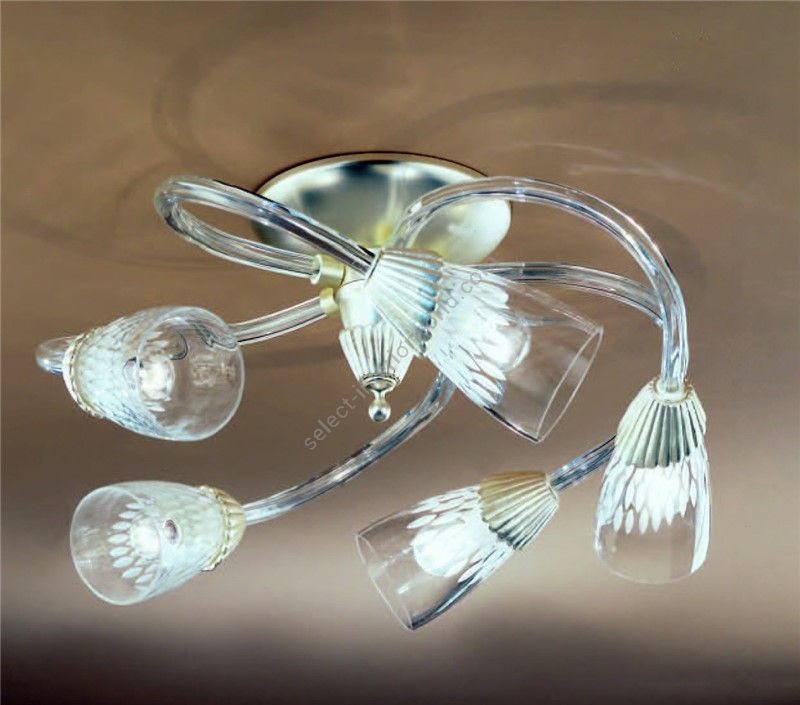 Ceiling lamp with wide arms made of murano glass available in two colours and crystal bobeches.