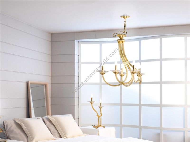 Chandelier with wide arms made of murano glass available in two colours and crystal bobeches.