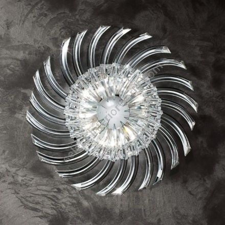 Ceiling light available in different colours in heat-curved murano glass. Polished chrome or 24 karat polished gold metal finish.