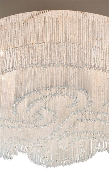 Decorative fringe formed by tiny beads made of murano glass, ultra-pure crystal rods and crystal pearls, all assembled and sewn by hand according to the venetian tradition.