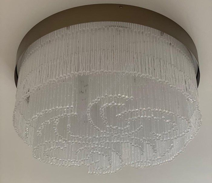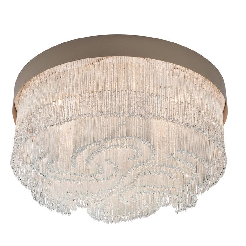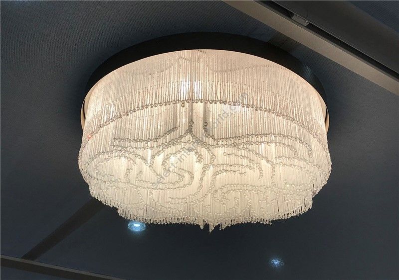 Elegant ceiling light witha fringe made of murano glass beads entirely handcrafted according to the venetian tradition. Available in 2 colours