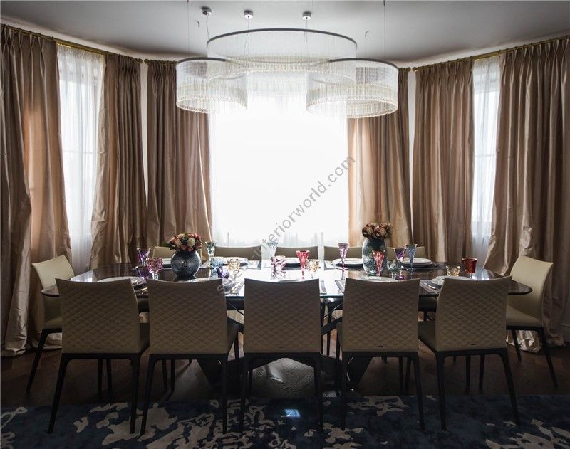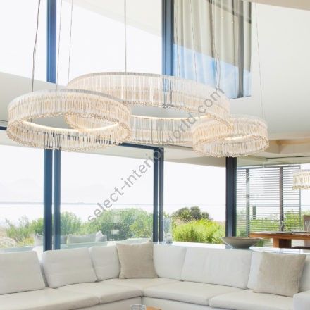 Decorative fringe formed by tiny beads made of murano glass, ultra-pure crystal rods and crystal pearls, all assembled and sewn by hand according to the venetian tradition.
