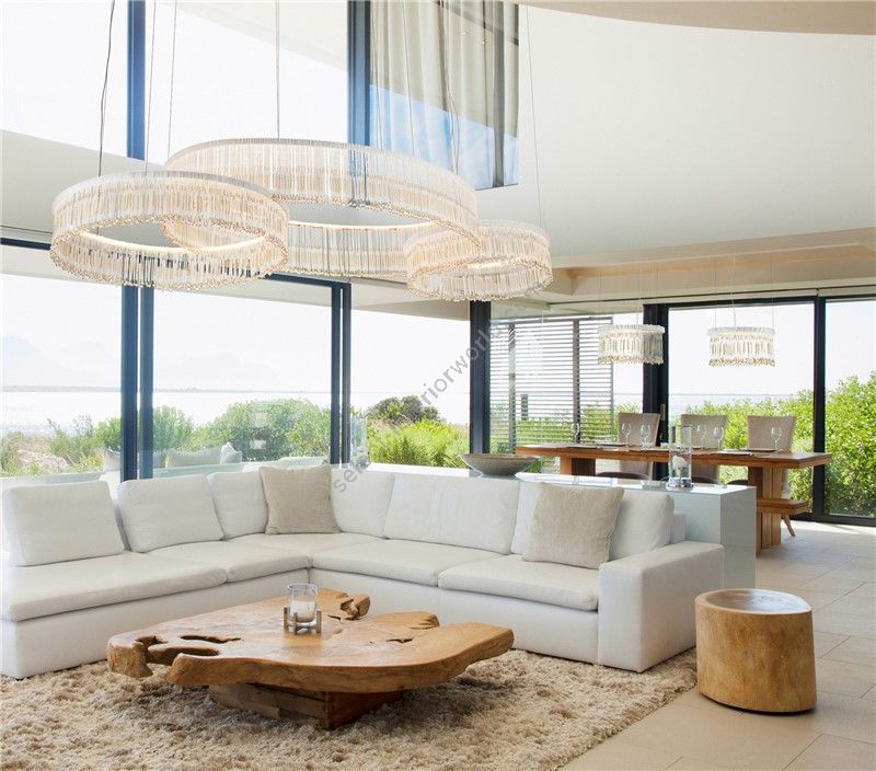 Handmade murano glass chandelier with fringes made of beads according to the ancient venetian tradition.