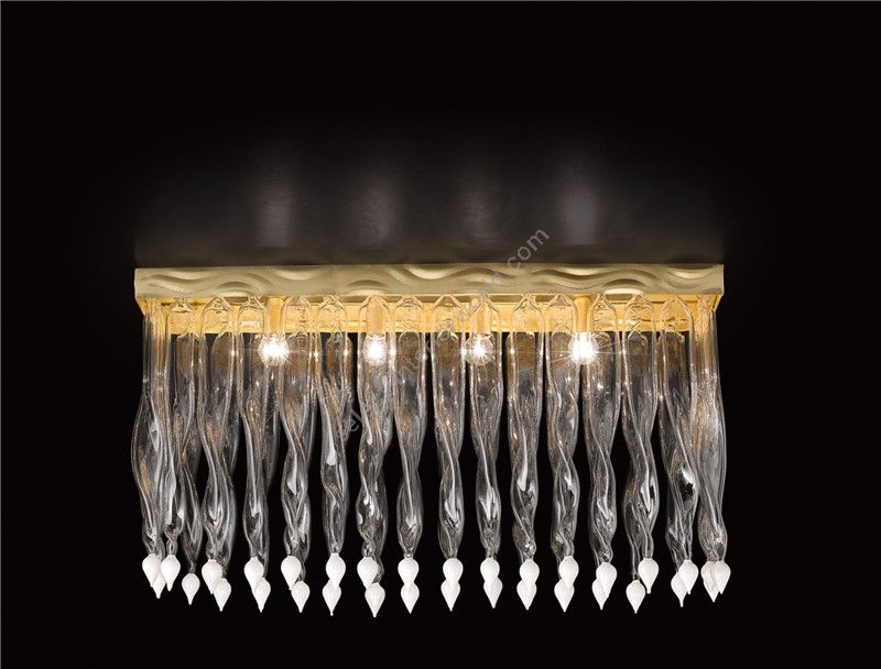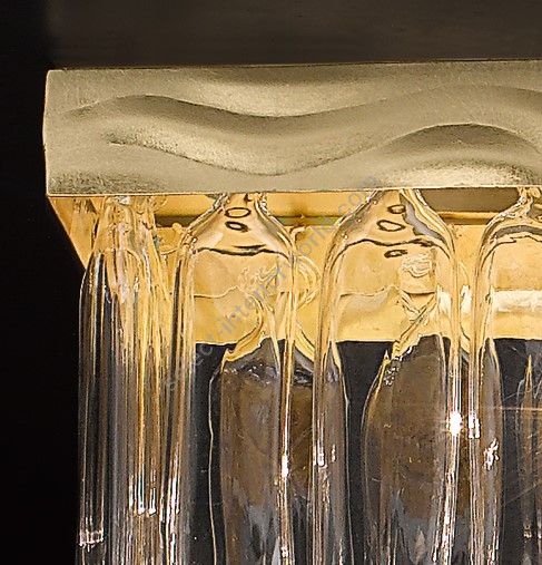 Ceiling lamp with decorative elements in colourful murano glass and a frame in gold or silver leaf.