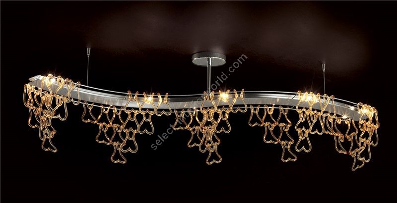 Ceiling lamp composed by several glass hooks connected to one another, available in 5 different colours.