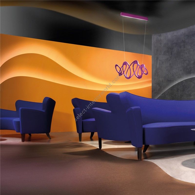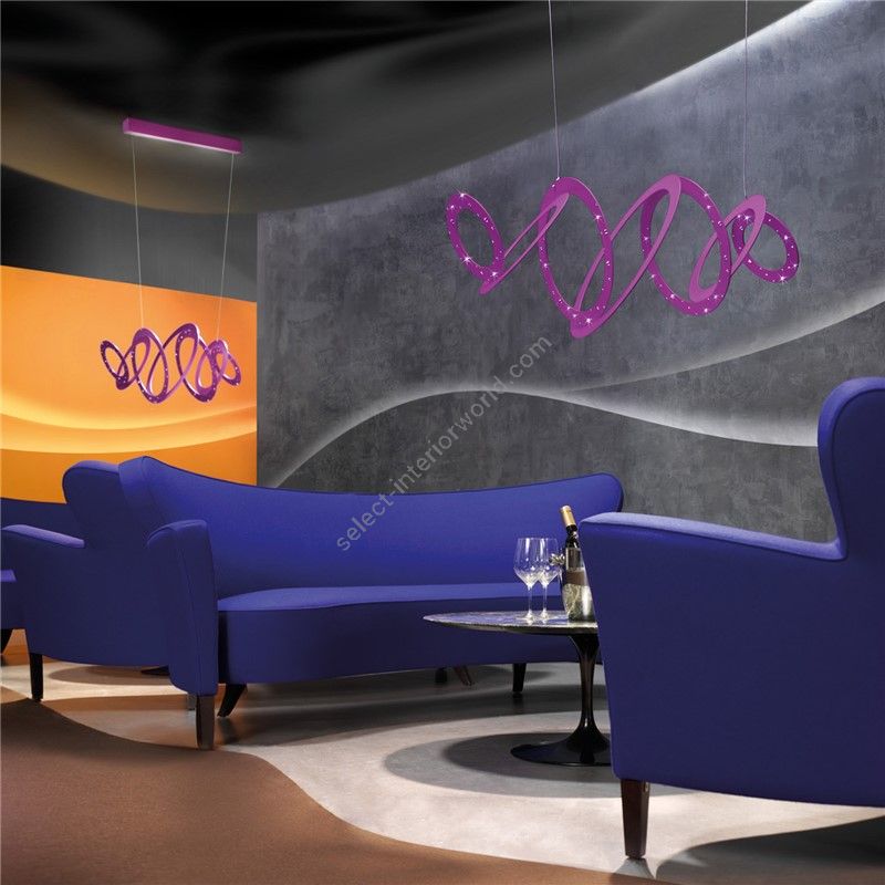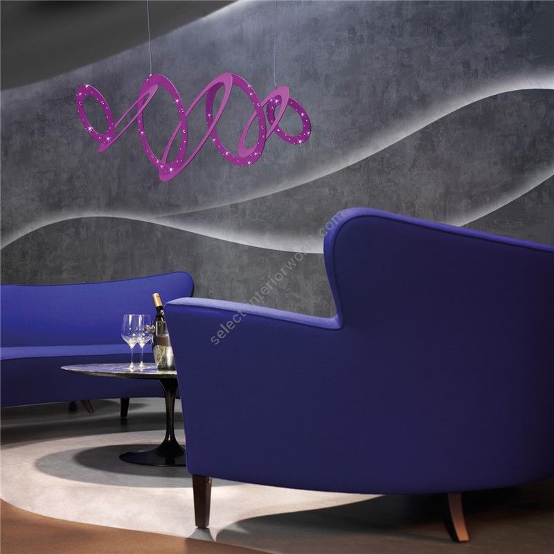 Suspension lamp with a contemporary and sophisticated design, that perfectly adapts to the following home environments: kitchen, living room, lounge and bedroom available in 6 colour combinations with reference to the frame and the glass.