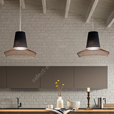 Lamp with a ceiling shade and a metal frame available in different finishes. Modern and refined pendant lamp.