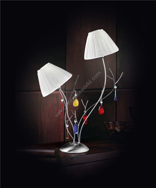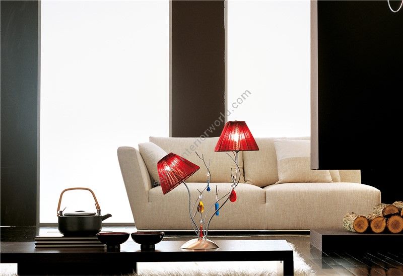 Table lamp with a contemporary and floral design, that perfectly adapts to the following home environments: kitchen, living room, lounge and bedroom available in 2 colour combinations with reference to the frame and in 2 colour combinations with reference to the lampshades.