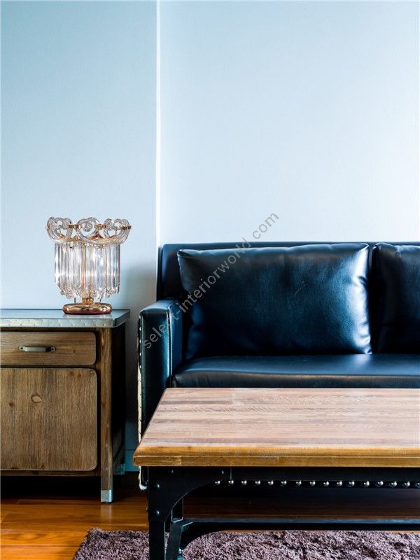 Table lamp with a modern, contemporary and sumptuous design, that perfectly adapts to the following home environments: kitchen, living room, lounge and bedroom.