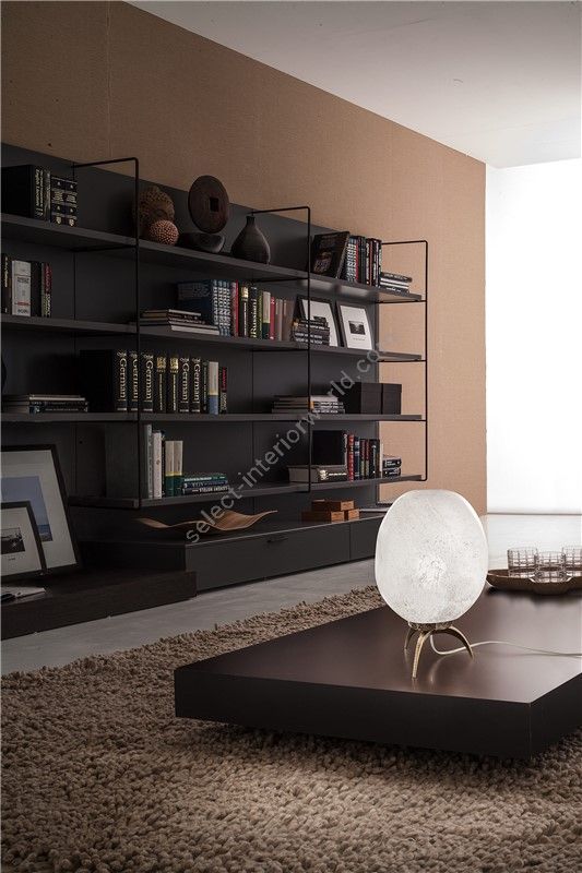The metal frame, which is very minimal and discreet to emphasise the glass at its best, is refined with a burnished brass or champagne finish.