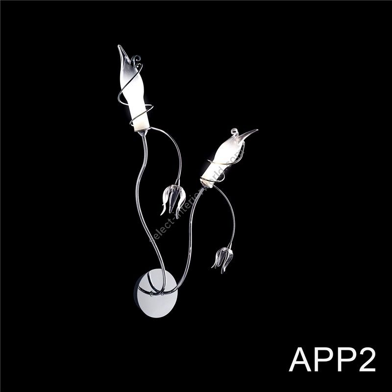 Wall lamp with a contemporary and floral design, that perfectly adapts to the following home environments: bathroom, kitchen, living room, lounge and bedroom available in 2 colour combinations with reference to the frame and in 2 colour combinations with reference to the glass