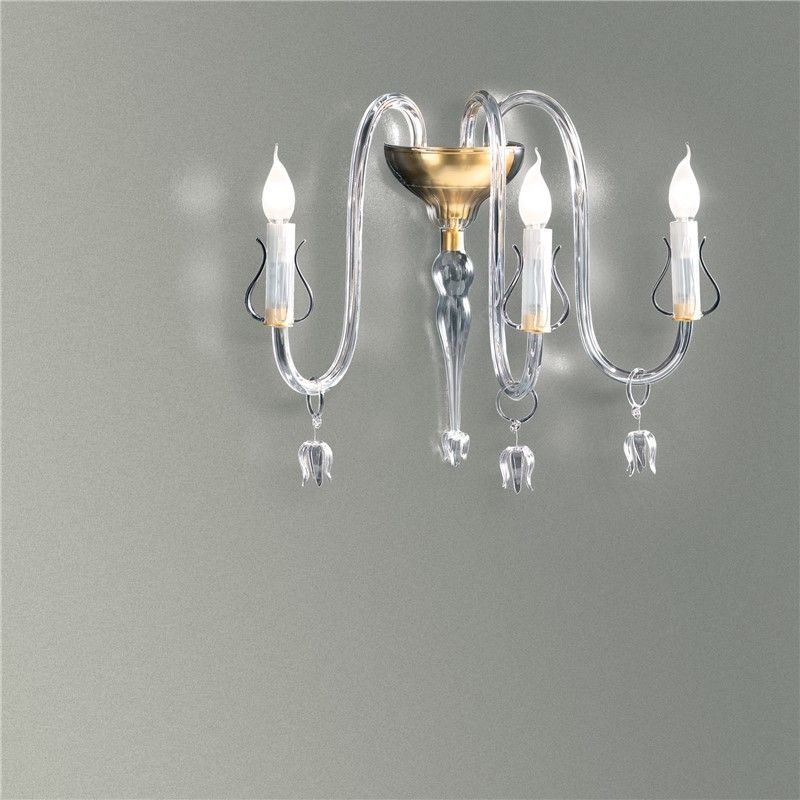 Classic design wall lamp in hand-blown glass by venetian master glass-makers. The model is available as clear or coloured.