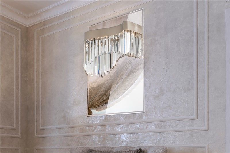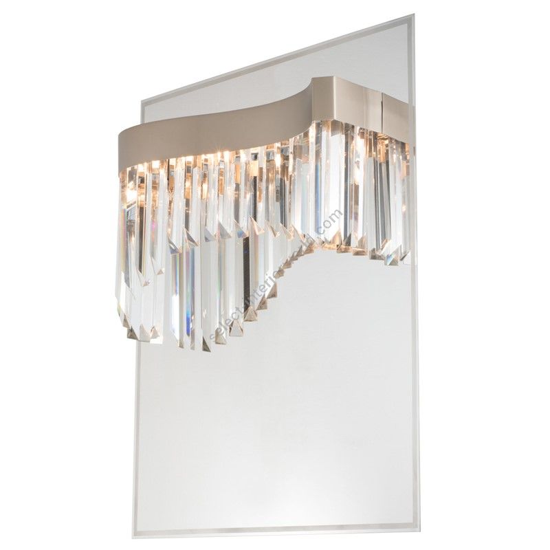 Dimmable led wall light embellished with triangular section crystal rods on a mirror stainless steel base. Very bright wall light.