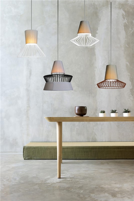 The chinette fabric diffuser, that has a thin layer of white polycarbonate to spread light, is available in the following finishes: concrete grey or charcoal grey.