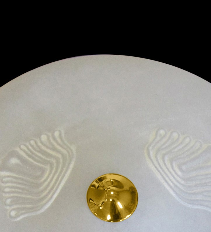 The visible metal frame is available in brushed polished 24 karat gold galvanic finish, providing greater brightness.