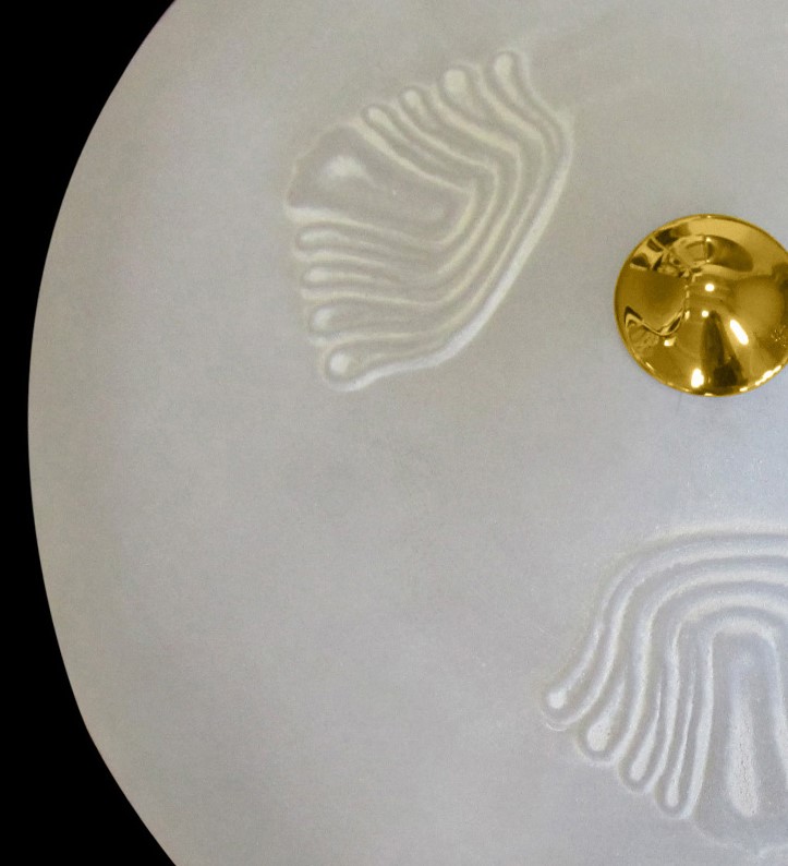 Ceiling lamp with a rustic and simple design, representing a floral glass pattern.