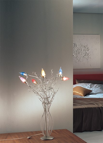 The metal frame is handcrafted and is available in the following finishes: brown with sprayed gold and silver decorations or totally bright silver.