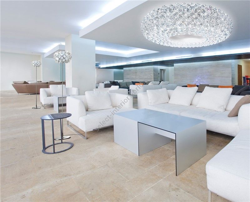 Acrylic multi-faceted prisms, of very high quality and extremely pure transparency, anti-yellowing notwithstanding time, form a round lampshade.