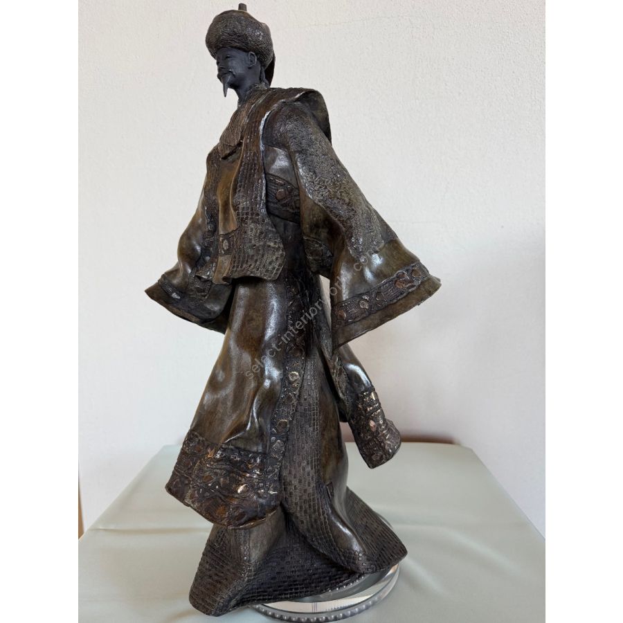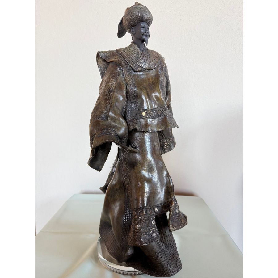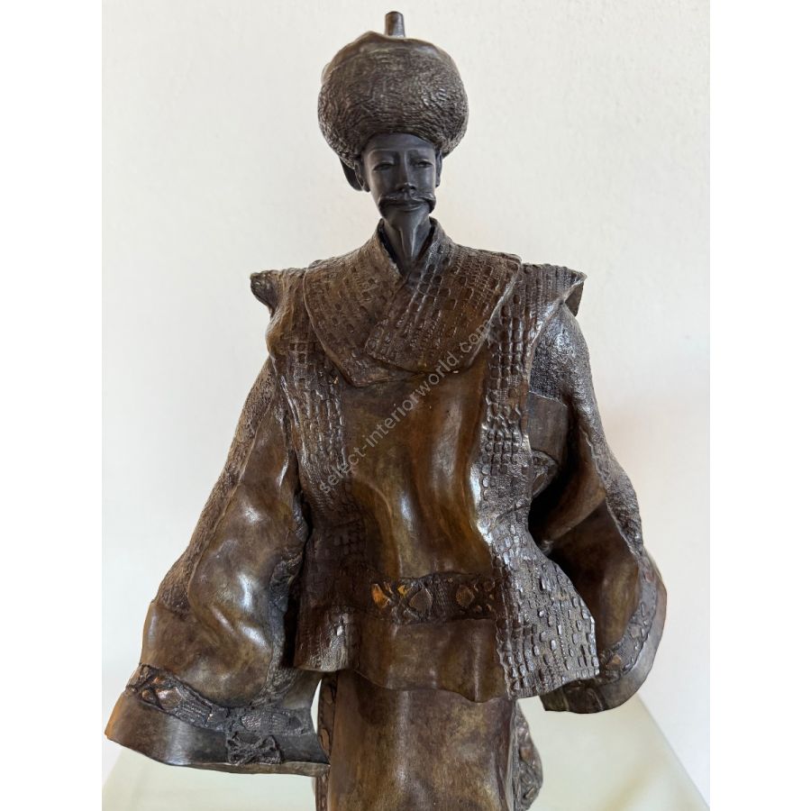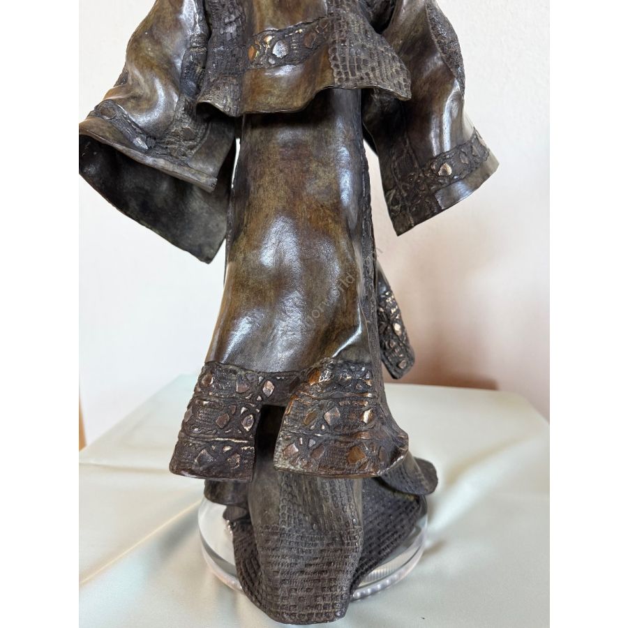 Le Mandarin is an original bronze sculpture by French artist Paul Beckrich. The work presents a stylized standing figure dressed in a traditional, flowing robe, evoking elegance, dignity, and a sense of quiet authority. The sculptural composition emphasizes balance, rhythm, and refined proportions—hallmarks of Beckrich’s artistic language.