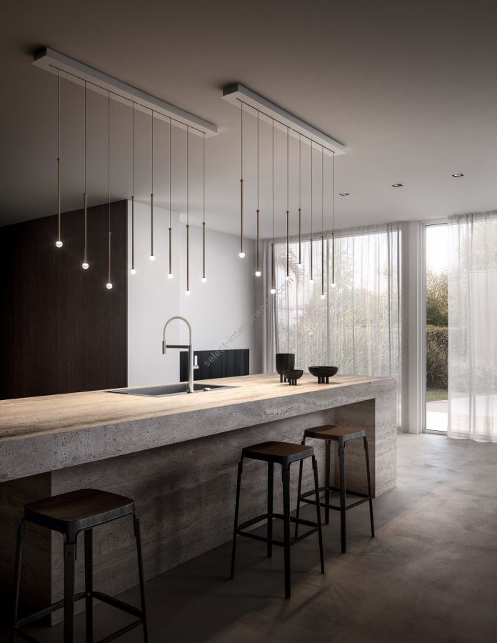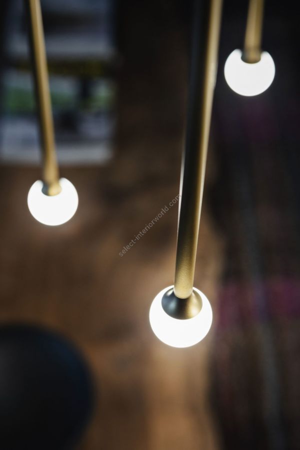 Thin stems in precious metallic finishes create evocative harmonies of light. Available in three sizes, Storm is a lamp that can live alone but is designed to be used in groups, in public spaces as well as at home.