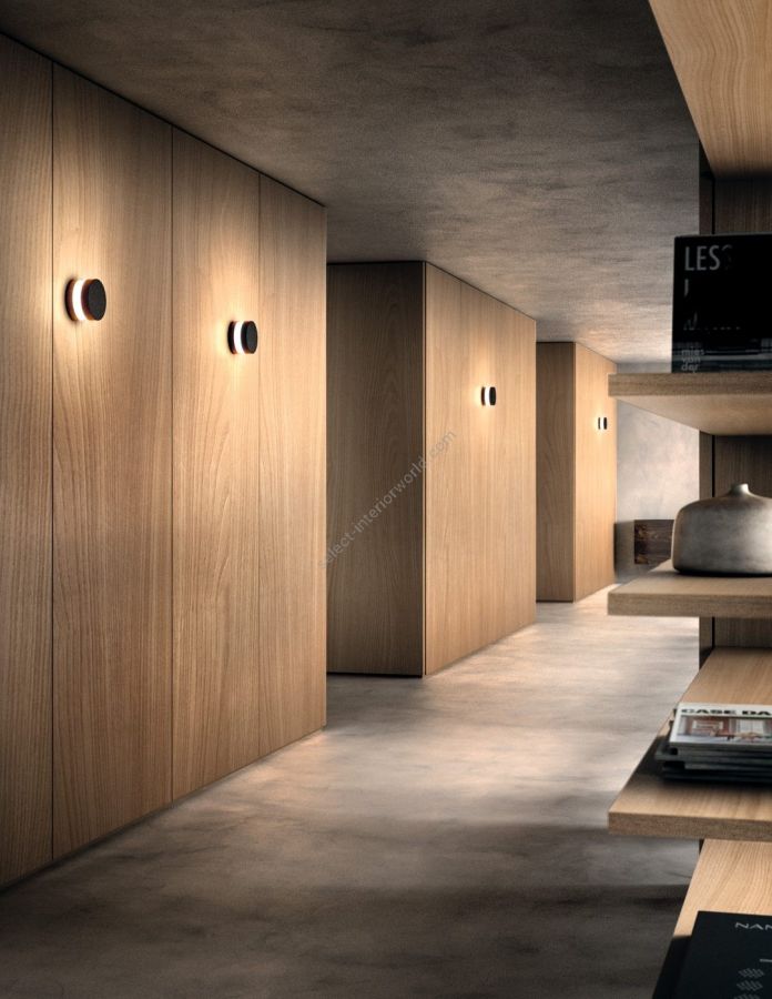 Ludo is a wall lamp inspired by a solar eclipse. Its two-level cylindrical structure creates a striking light effect reminiscent of the solar corona when viewed from the front.