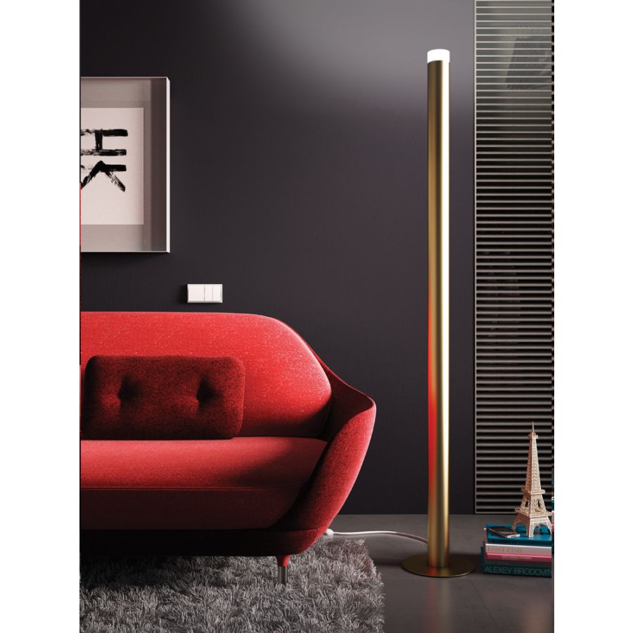 LED POLE to satynowy słup światła, imponująca świetlna pałka. Z jego dyskowej podstawy wznosi się cylindryczna sekcja rury, która kończy się ekranem z piaskowanego metakrylatu o identycznym przekroju, wewnątrz którego znajduje się mocny LED. LED POLE to funkcjonalna lampa, bez sztuczności. Zapewnia oświetlenie ogólne, które można również ściemniać, osiągając światło, którego wymaga każda chwila, od maksymalnej mocy 3500 lumens do miękkiej i przytulnej minimalnej intensywności. Jest idealna do salonu domu, lobby hotelowego, przestrzeni wspólnej w obiekcie i, ogólnie, do każdego miejsca, które wymaga mocnego, pośredniego i ściemnialnego oświetlenia.