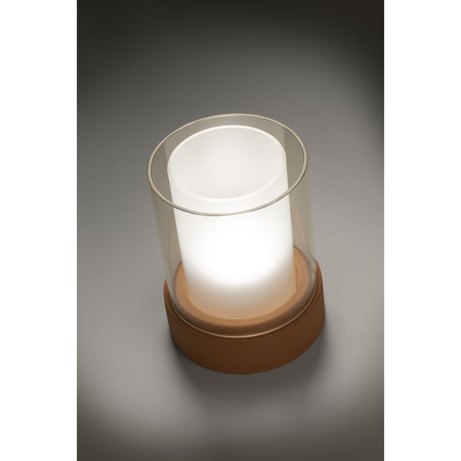 POTLIGHT to lampka stołowa z ceramiczną bazą i abażurem złożonym z dwóch szklanych cylindrów, które pozostawiają między sobą przestrzeń, którą można wypełnić.