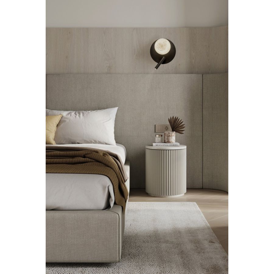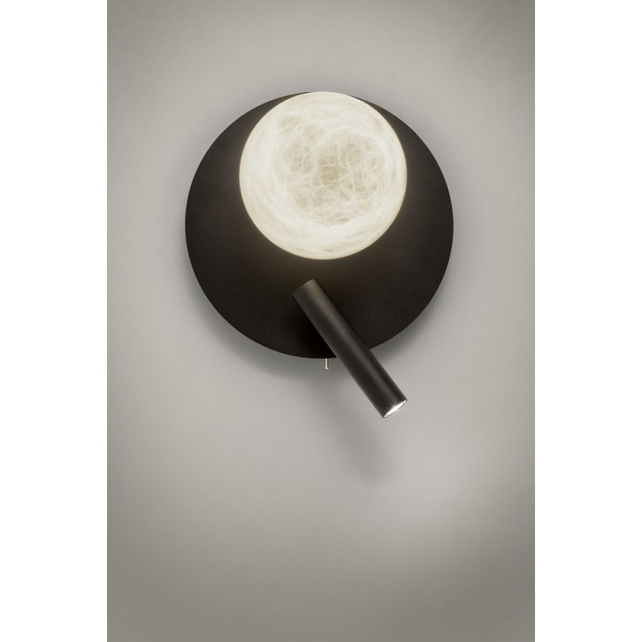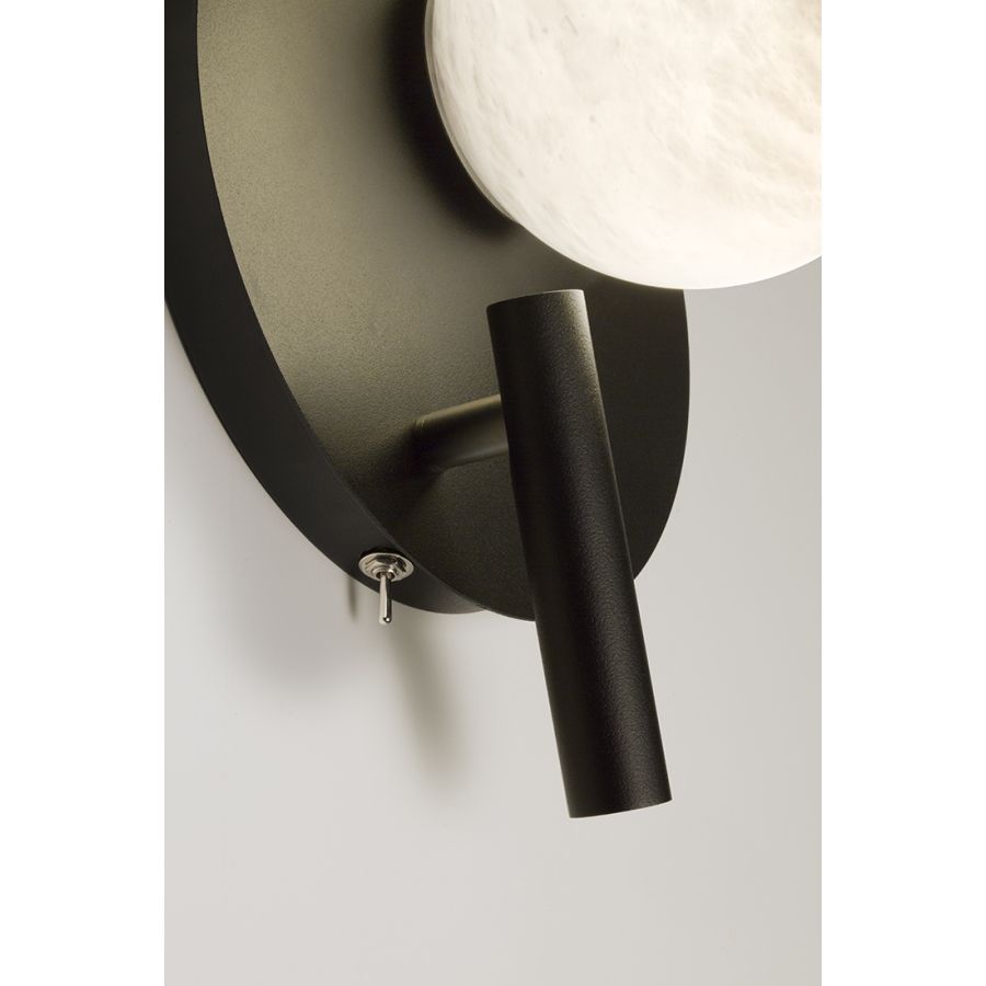 Konstrukcja kinkietu z ramieniem do czytania z kolekcji Tribeca jest wykonana z teksturowanego czarnego żelaza, a klosz to alabastrowa kula 12cm średnicy, wewnątrz której mieści się zintegrowany LED Seoul 4.5W 270lm 2700K CRI>80. Ramię do czytania, regulowane za pomocą przegubu kulowego, zawiera zintegrowany LED Cree 3W 3000K 260lm CRI>80, który jest zawsze 'nieściemnialny' i ma własny włącznik/wyłącznik umieszczony u dołu podstawy. Ten kinkiet występuje w dwóch wersjach w zależności od tego, czy LED klosza alabastrowego ma być ściemnialny, czy nie: ściemnialna (RG) przez TRIAC, z 220V 350mA sterownikiem, lub nieściemnialna, z 90-264V 350mA sterownikiem. W obu przypadkach sterownik jest dołączony i znajduje się wewnątrz konstrukcji. Uwaga: Każdy klosz jest unikatowy i niepowtarzalny; ponieważ jest to materiał w 100% naturalny wydobywany w kamieniołomie, różnorodność białych, brązowych i szarych żył jest losowa.
